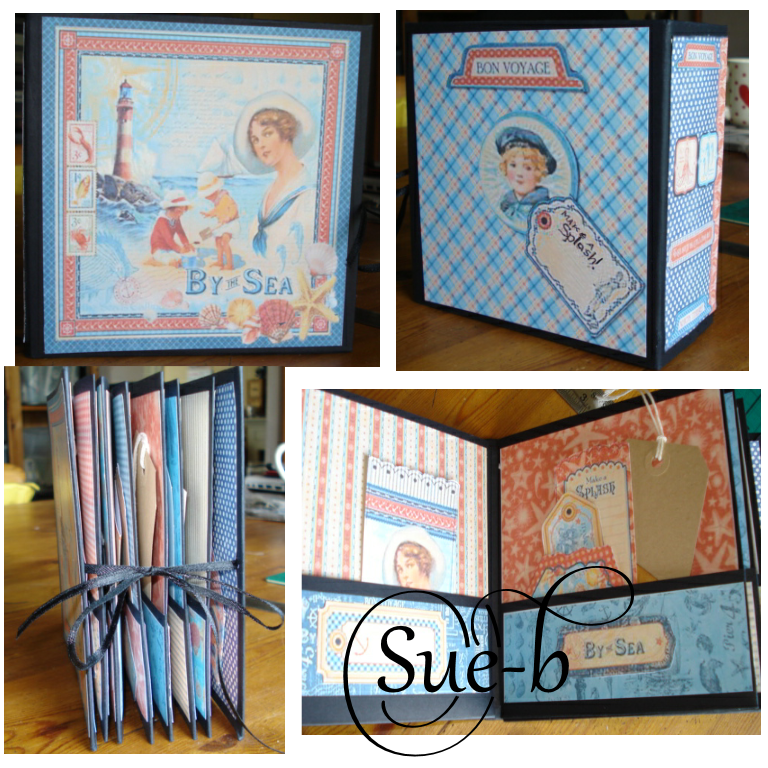 I have recycled a pet food box , this is extremely strong firm cardboard and proved perfect for the spine and covers for these mini albums. I have made two from one box so that's a great saving on chipboard that would normally be used in the making of these albums, both albums have six pages with pockets for adding your photos and journalling cards and tages for recording your memories.